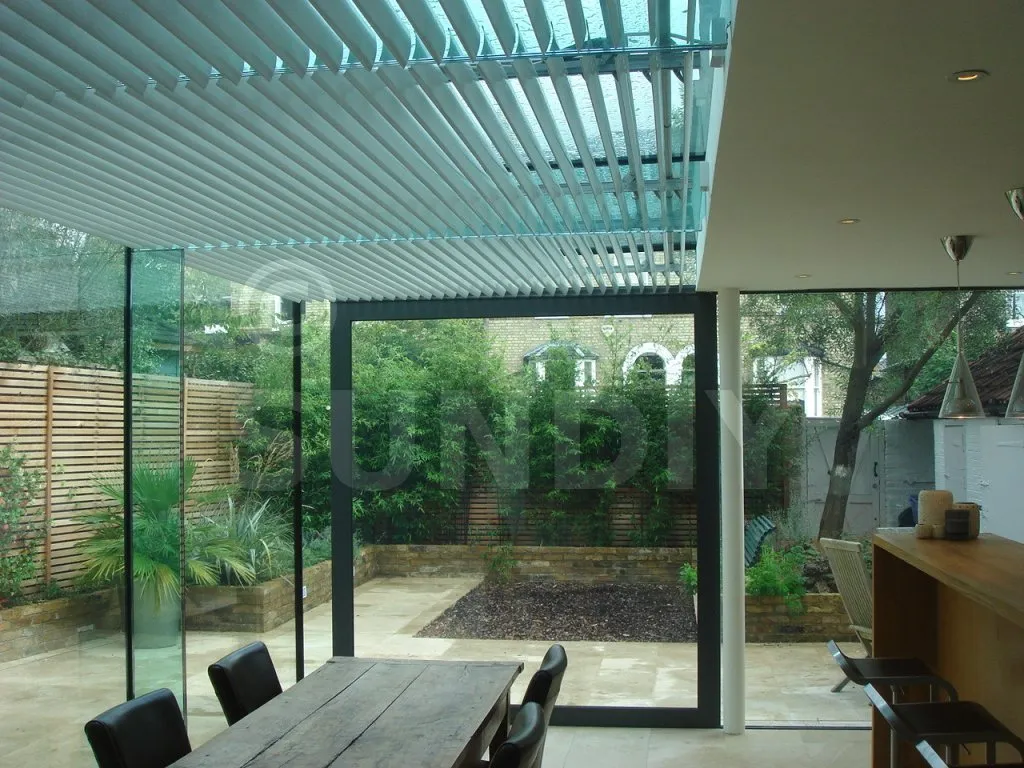 Avec une extension en verre, vous pouvez facilement ajouter quelques mètres carrés à votre maison ou bâtiment. Dans une véranda ou sous un porche, vous avez l’impression d’être assis dehors. Cette sensation est encore renforcée si le toit est également en verre. Vous pourrez ainsi profiter des saisons toute l’année avec des persiennes de Sunshield.