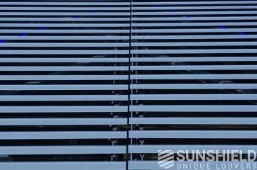 Pour cette protection solaire, le choix s’est porté sur la lame 145-E . Une lame avec une face avant sphérique et une largeur de 145 mm. Tous les composants en aluminium sont revêtus de RAL 7016. Également appelé gris anthracite. Les pièces en plastique sont noires.