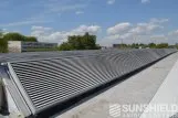 Le toit de la salle principale du musée est composé de 12 puits de lumière à double-face, chacun d’une longueur de plus de 60 mètres. Ces immenses puits de lumière sont équipés de systèmes de gestion de la lumière du jour de Sunshield. Chaque côté est divisé en plusieurs sections et chaque section est exploitée indépendamment ; via Wi-Fi, avec un iPad !