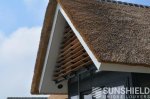 Dwingeloo se situe à peu près au cœur de Drenthe. Voici les pignons latéraux droit et gauche et la façade d’une villa rurale équipée de systèmes de persiennes de Sunshield.