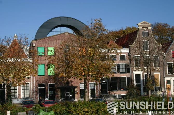 La façade de l’arche est équipée de persiennes uniques de Sunshield. La surface totale ne mesure pas moins de 145 m². Le store est actionné par des moteurs câblés.