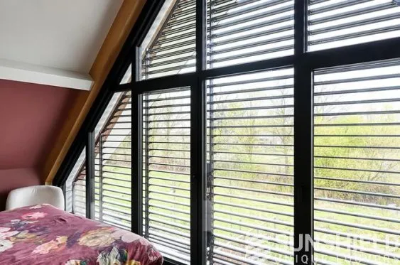 Les résidents ont choisi la persienne 107-E, avec des lames de 107 mm de large. Ces lames s’emboîtent grâce à une rainure, offrant à la fois un chevauchement et un emboîtement parfaits.