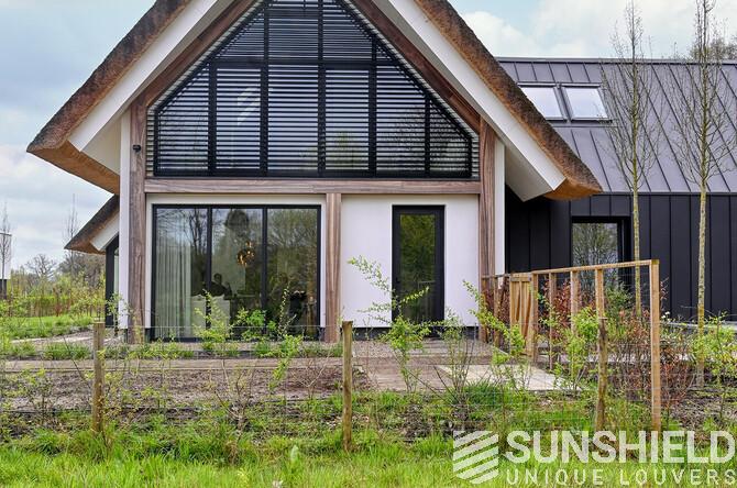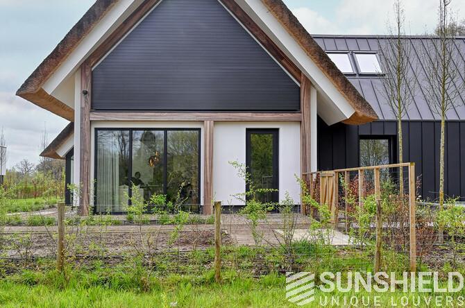 Voici une maison individuelle équipée de persiennes, réalisée par Sunshield, en collaboration avec le maître d’oeuvre Raad & Uitvoering à Tilburg.