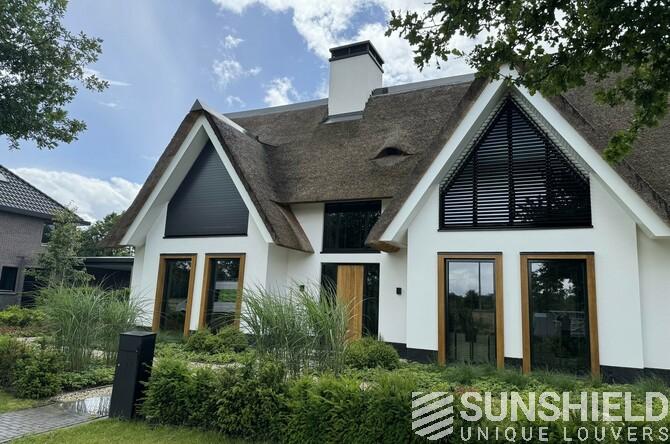 Voici une résidence équipée de persiennes conçues par Sunshield, en collaboration avec l’entreprise de construction Scholte OP Reimer à Vasse (NL). Et pas seulement un, mais sept systèmes différents.