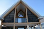Ici, dans cette région aussi verte que riche en eau, une maison individuelle a été équipée de persiennes uniques de Sunshield.