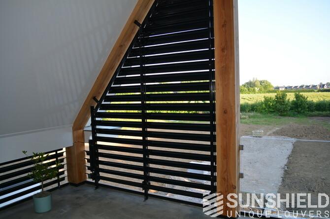 Les habitants ont opté pour la persienne 145-E. Une lamelle avec une face avant convexe et une largeur de 145 mm. Le grand frère de la 75-E pour ainsi dire.
