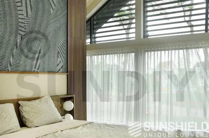 Lorsque les lattes sont complètement ouvertes, la visibilité entre les lattes est de 140 mm. Les résidents peuvent alors profiter pleinement du magnifique panorama.