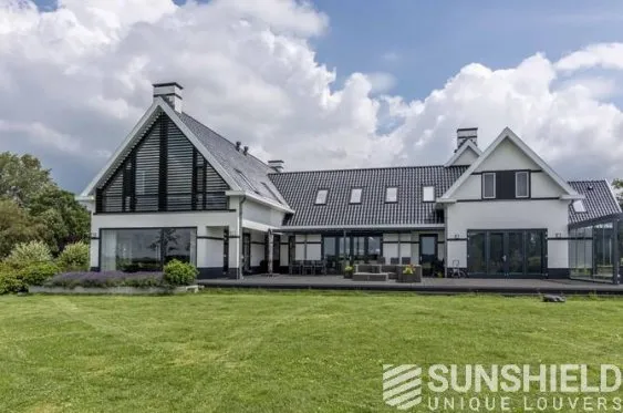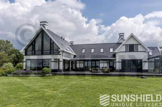 L’obscurcissement du 155-E peut être encore augmenté en installant des brosses ou des capuchons sur les côtés du système de persiennes. Les résidents ont opté pour des capots latéraux pour ce manoir.