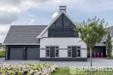 Les pièces en aluminium, y compris les caches latéraux, sont revêtues de la couleur RAL 7016. Ce gris anthracite offre un joli contraste avec le style maison de campagne. Les pièces en plastique moulées par injection sont noires.