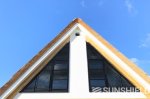 Les composants en aluminium sont revêtus de la couleur RAL 9004, noir de sécurité. Les pièces en plastique sont noires. Les systèmes de persiennes offrent un joli contraste avec les poutres en bois et la couverture du toit en chaume, si différents et pourtant en harmonie.