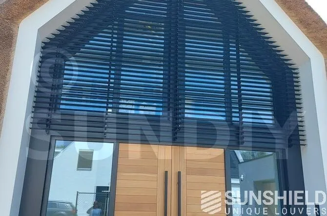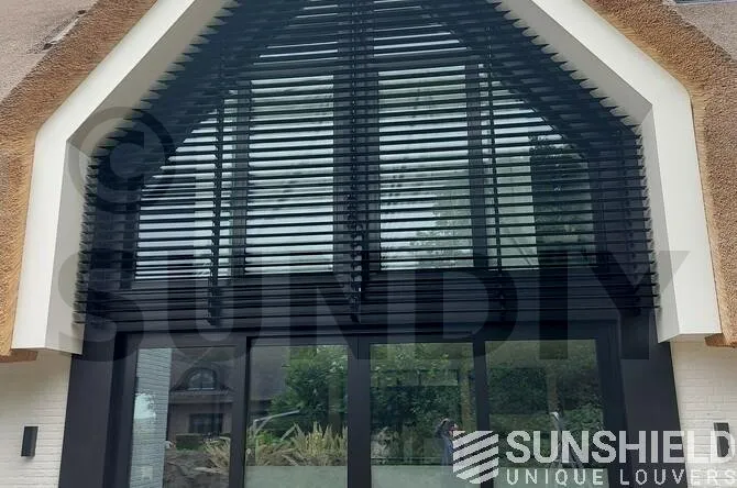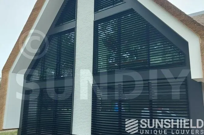 Pour les lames, les résidents ont choisi le modèle 96-E, avec une largeur de 96 mm. Lorsqu’elles sont entièrement ouvertes, l’espacement entre les lames est de 9 cm, permettant ainsi une grande quantité de lumière naturelle et une vue dégagée.