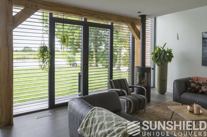 Lorsque les lamelles sont complètement ouvertes, la visibilité entre les lames est de 90 mm. Les résidents peuvent alors profiter pleinement du panorama champêtre depuis leur résidence.