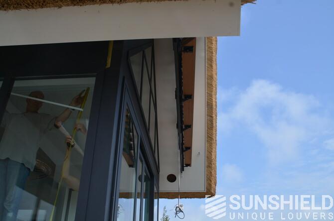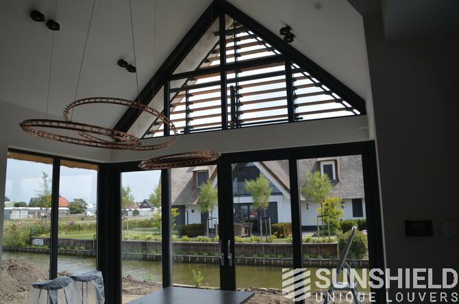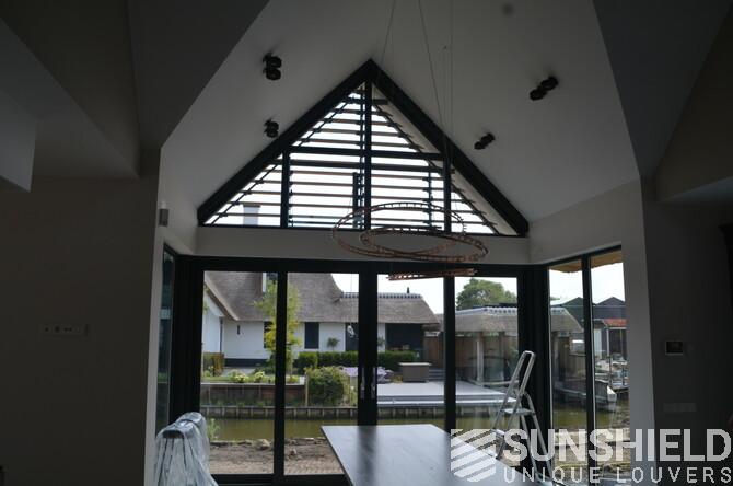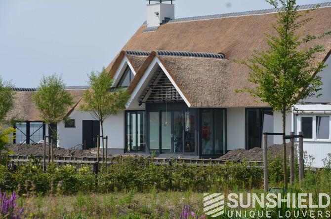 Voici une villa moderne équipée de persiennes uniques. Les résidents ont choisi la persienne 148- W. Une lame d’une largeur de 148 mm et une vue entre les persiennes de 140 mm – donc avec une bonne vue.