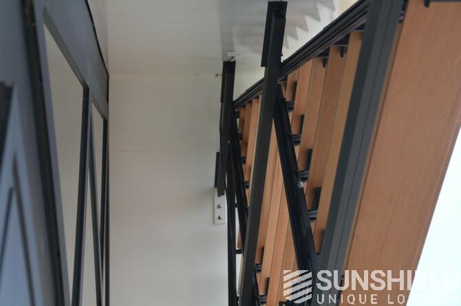 Le système de volets triangulaires couvre une surface de plus de 3 m². Ils s’ouvrent et se ferment à l’aide d’une télécommande et peuvent être réglés en continu dans n’importe quelle position intermédiaire souhaitée.
