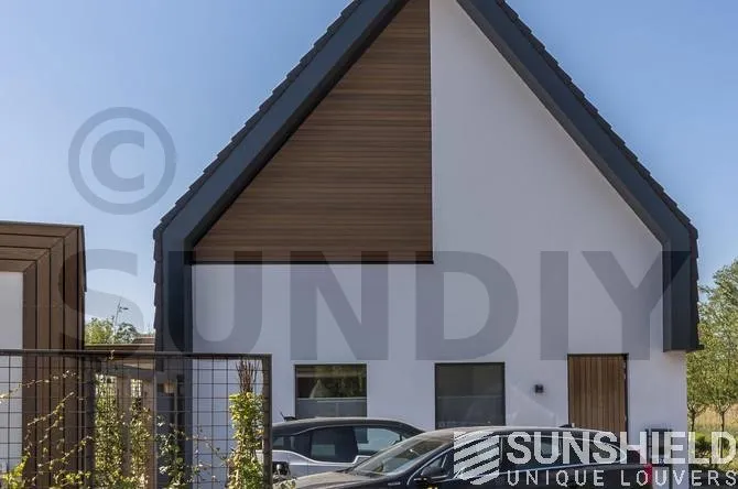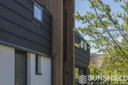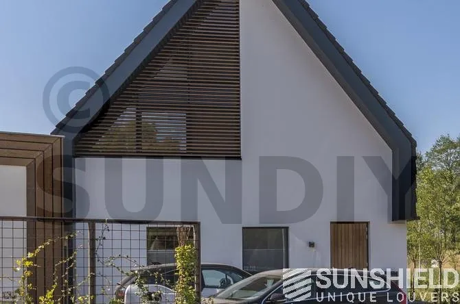 Les résidents ont choisi la persienne 94-W. Une latte en bois d’une largeur de 94 cm. Le Western Red Cedar a été choisi pour le 94-W, le bois le plus populaire pour les persiennes en bois.