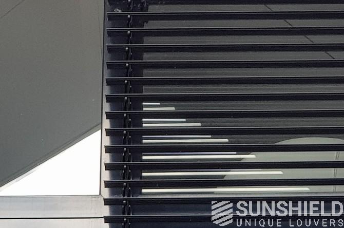 Les lignes épurées de la maison individuelle sont accentuées par les persiennes uniques de Sunshield. Dans la phase finale du nouveau bâtiment, en 2018, trois systèmes de lamelles ont été installés.