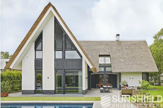 Dans cette belle région a été construite une villa individuelle tout aussi belle, un projet des architectes Kuin & Kuin. Cette villa rurale est équipée de pas moins de huit systèmes de persiennes installés par Sunshield.