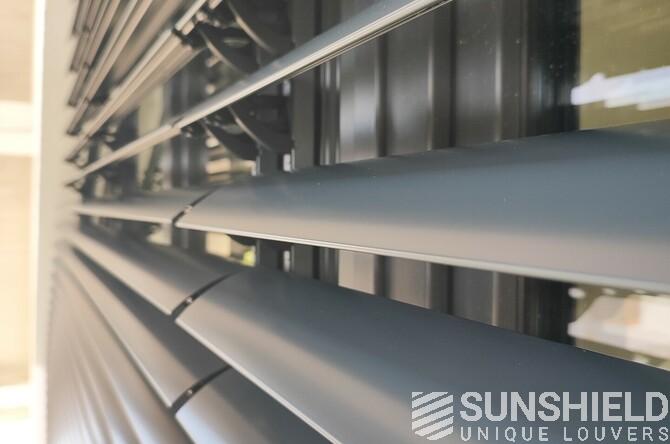 Les pièces en aluminium, comme les persiennes, sont peintes en gris anthracite RAL 7016. Les pièces en plastique sont peintes en noir.