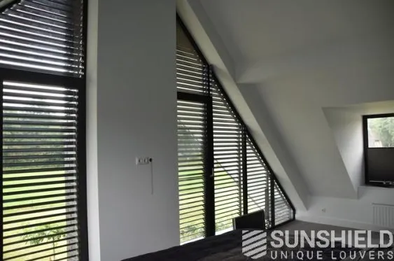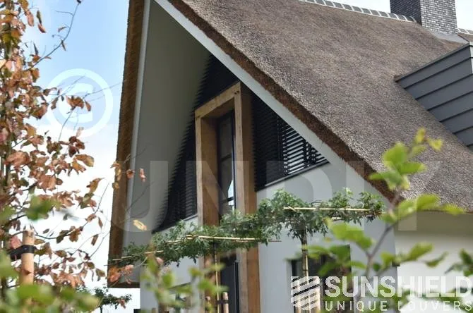 Les habitants ont finalement opté pour la lame 75-E, une lame à face bombée. Les pièces en aluminium sont peintes en RAL 9004, noir de sécurité. Les pièces en plastique sont également noires.