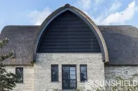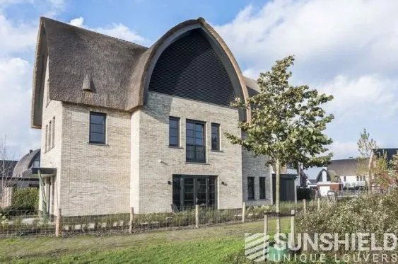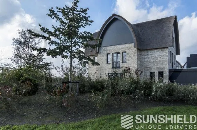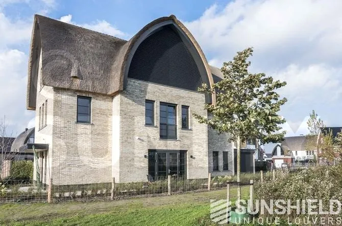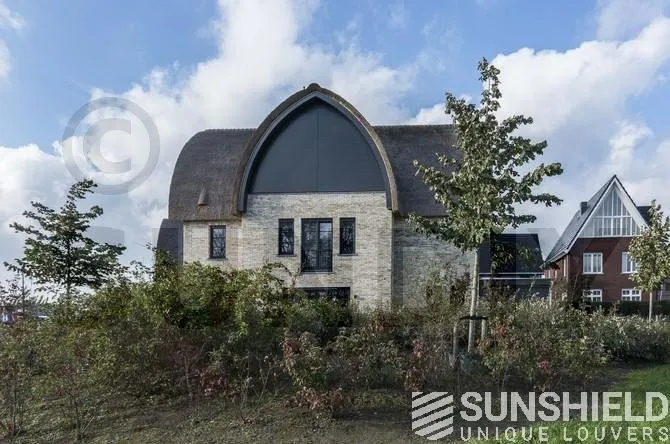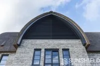 Pour résoudre ce problème, Sunshield a créé un système de persiennes inclinables en deux parties pour la grande section vitrée. Chaque partie a une surface de plus de 10 m². Les parties gauche et droite de ce store mobile peuvent être actionnées indépendamment.