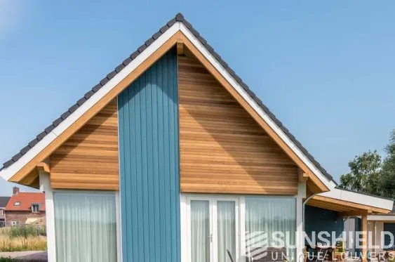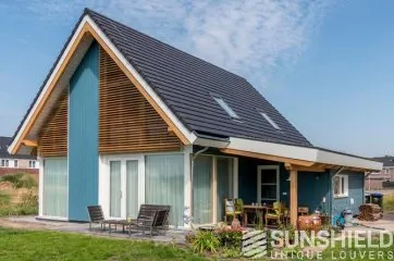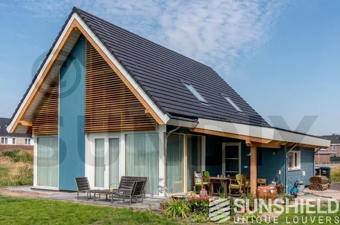 Les habitants ont donc opté pour des lames en bois de cèdre rouge de l’Ouest. Le bois de cèdre rouge de l’Ouest est un bois durable, stable, relativement léger et facile à travailler. Les persiennes en bois renforcent l’aspect rustique de la maison.