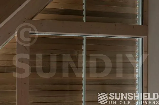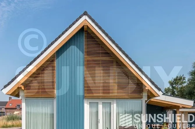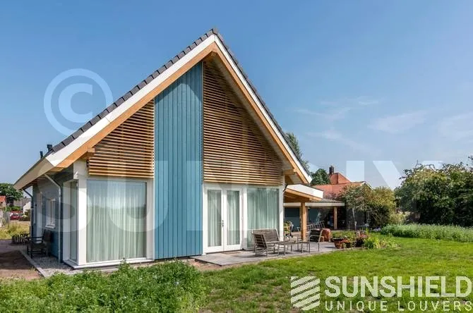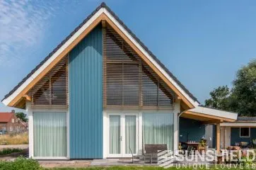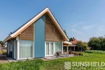 Les lames sont de type 98W, une lame d’une largeur de 98 mm. Lorsque les lames sont entièrement ouvertes, la vue entre les lames est de 9 centimètres. Les pièces en aluminium et en plastique sont blanches (RAL 9010), de sorte qu’elles s’intègrent parfaitement à la menuiserie peinte en blanc.