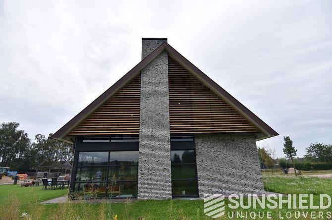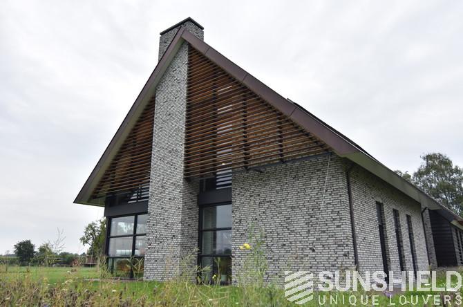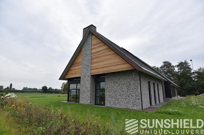 Le bureau d’architecture Lauwers Ontwerp a chargé Sunshield de réaliser la protection solaire d’une maison de campagne dans la campagne de Reusel, située entre Eindhoven (NL) et Turnhout (B). Deux systèmes de lames, tous deux de forme triangulaire, ont été placés ici.