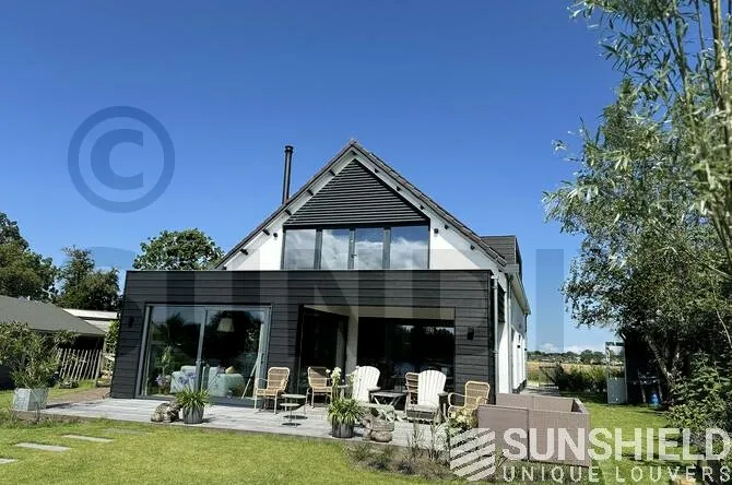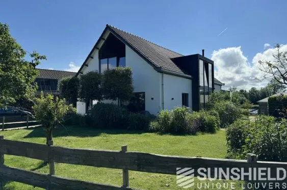 Les résidents ont opté pour la persienne 96-E. Il s’agit d’une lame d’une largeur de 96 mm. La visibilité entre les lames, lorsqu’elles sont entièrement ouvertes, est de 90 mm. Donc beaucoup de lumière du jour et une vue dégagée.