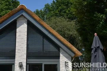 Les riverains ont opté pour la lame 96-E. Cette persienne a une largeur de 96 mm. Lorsque les lamelles sont complètement ouvertes, la visibilité entre les persiennes est de 9 cm.