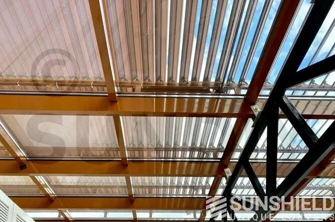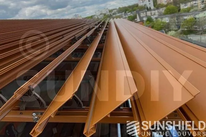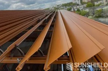 La lame 117-E a été développée pour le toit à lames Infinity. L’une des particularités de la lame 117-E est que les lames se chevauchent et s’imbriquent pour une évacuation optimale de l’eau.