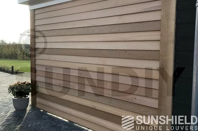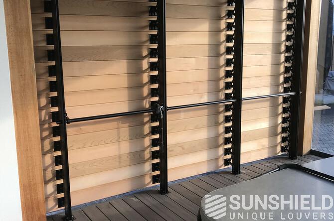 Les résidents ont opté pour la persienne modèle 153-W. Il s’agit d’une lame de bois de 153 mm de large, fabriquée en cèdre rouge.