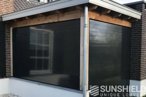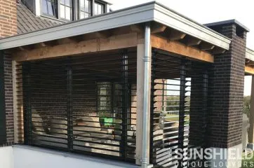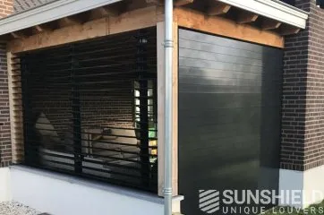 Pour ces murs, les habitants ont opté pour la persienne 96-E. La 96-E est une lame en aluminium qui offre une vue magnifique entre des lames ouvertes de 9 cm.