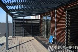 Lorsque les persiennes sont fermées, le toit à persiennes est bien sûr étanche. Sur les côtés, les persiennes 96-E peuvent être actionnées manuellement.