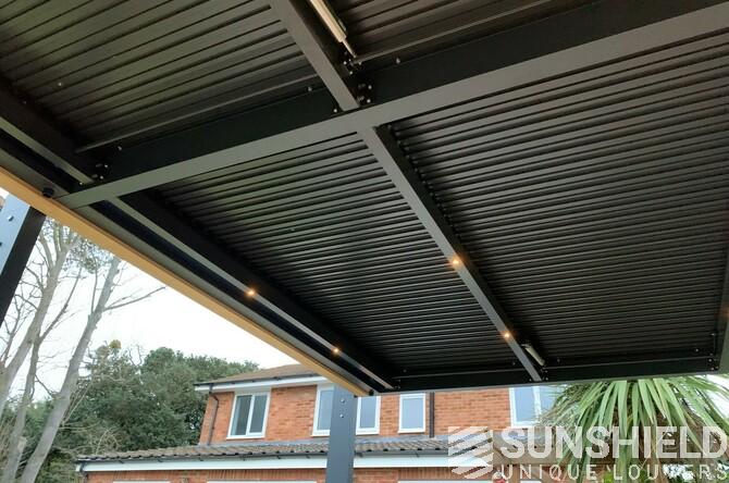 Ce projet est un toit à persiennes sur mesure, conçu et construit par Urban Skies, notre partenaire de toits à persiennes au Royaume-Uni