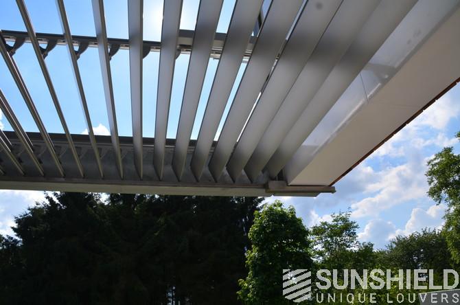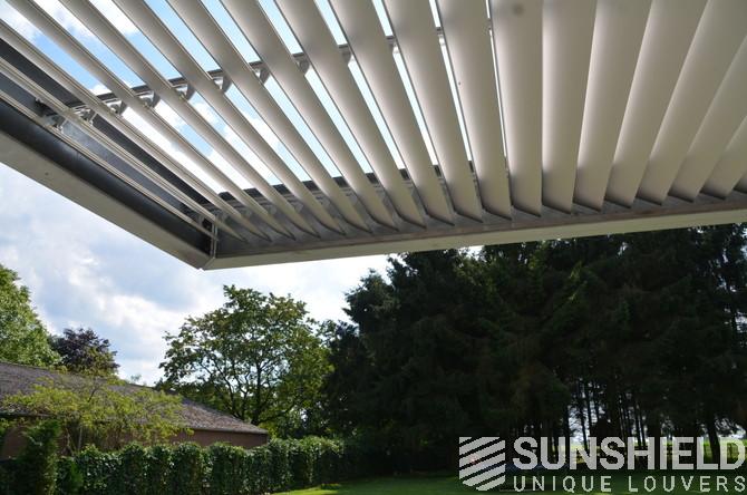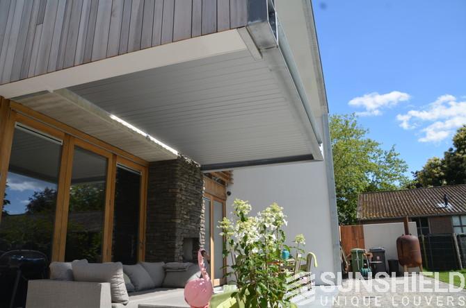 Accueil > Sunshield > Projets > Maisons > Toits à persiennes > Pergola intégrée, 155-E, Riel, NL