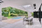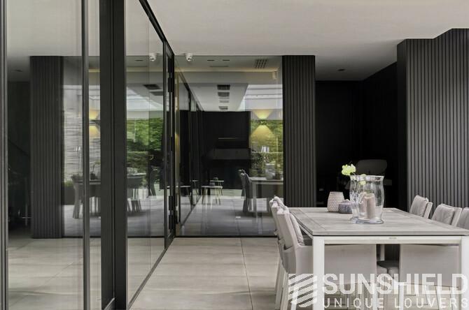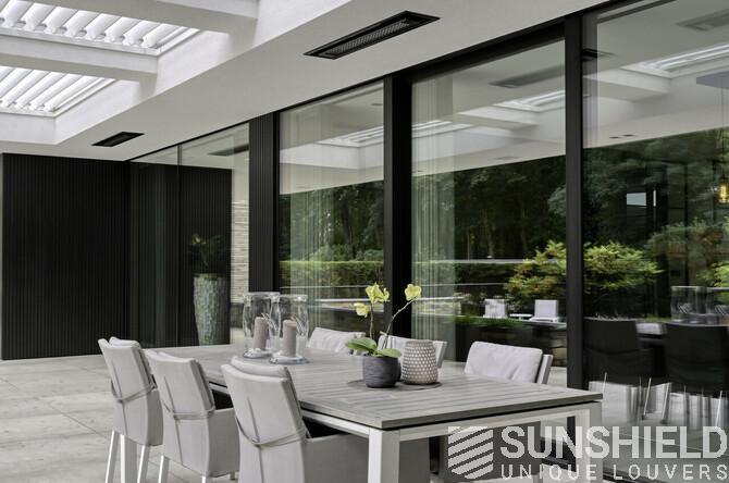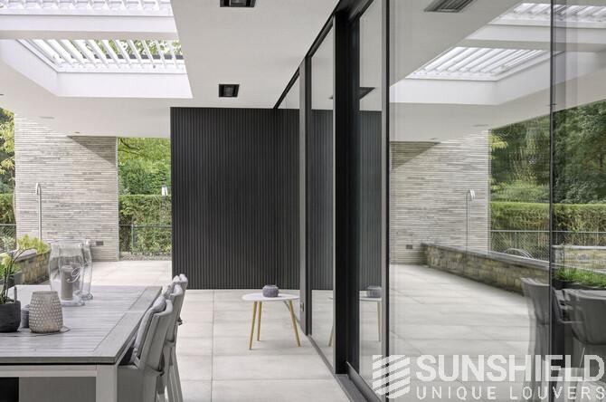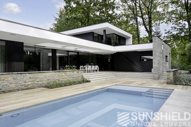 Voici une villa citadine équipée de trois toits à persiennes Quadro de Sunshield, en collaboration avec Hoving Construction à Valkenswaard (NL).