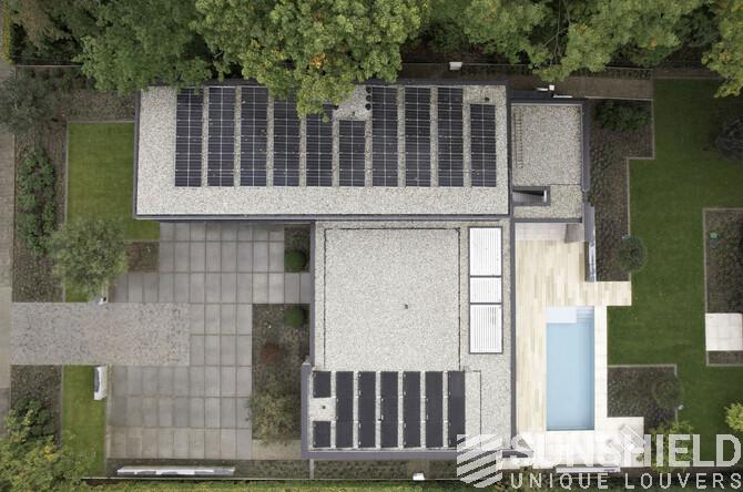 Accueil > Sunshield > Projets > Maisons > Toits à persiennes > Toiture à persiennes triple quadro, Hoving Bouw, Eindhoven, Pays-Bas