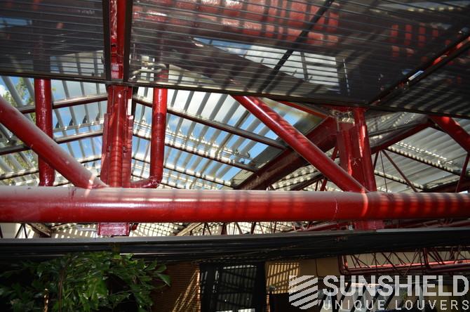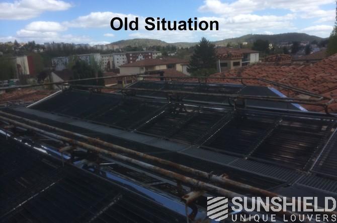 Bien qu’un autre système de protection solaire soit déjà en place, la Banque Populaire de Cahors (France) a décidé d’investir dans le système Sunshield 145-E. Une mise à niveau avec contrôle automatique complet de Somfy, pour contrôler le soleil et la lumière du jour et pour éviter les graves problèmes de chauffage solaire pour l’atrium entièrement vitré de près de 1000 m2.