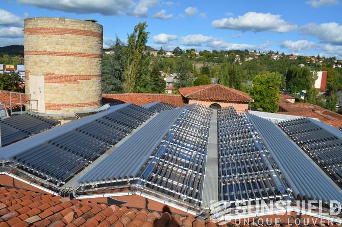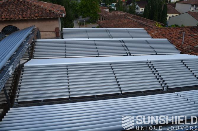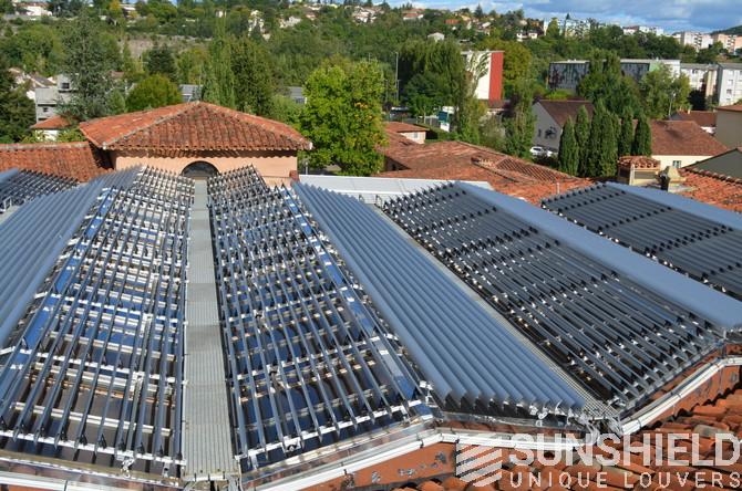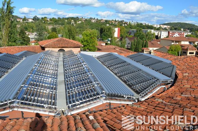 Accueil > Sunshield > Projets > Projets XXL > Lucarne extérieure > Grande lucarne, 145E, Banque Populaire Cahors, France