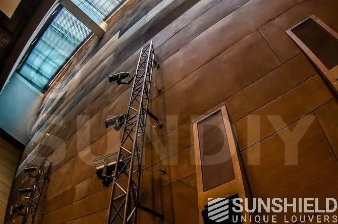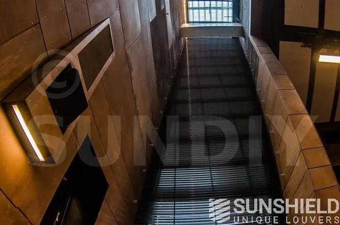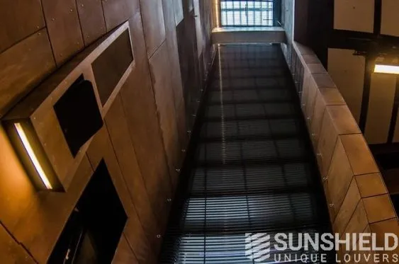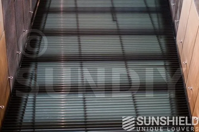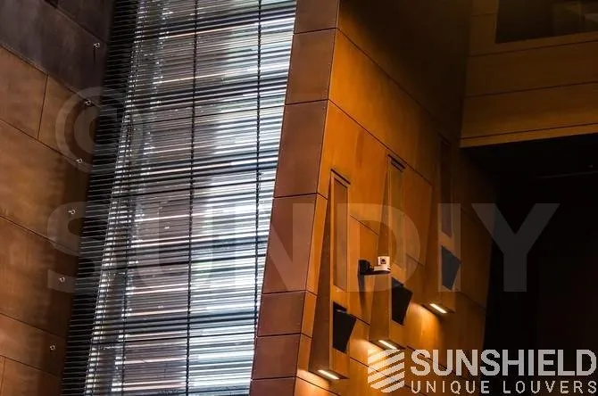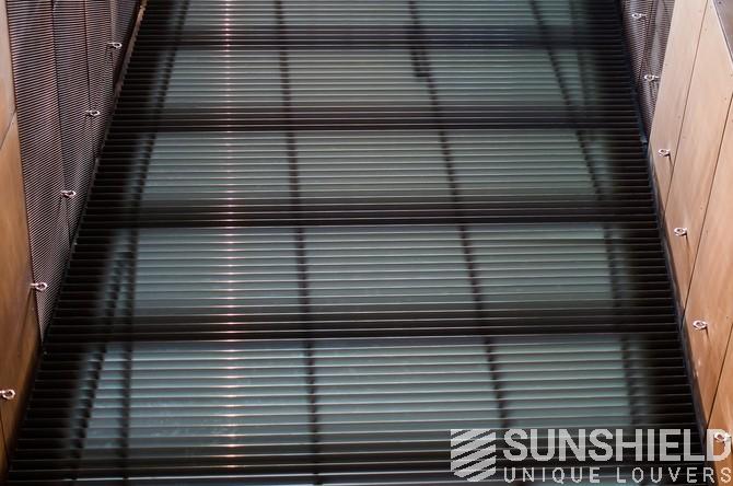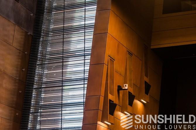Le modèle de persienne choisi est le 88-E. Il s’agit d’une persienne en aluminium extrudé d’une largeur de 88 mm. Grâce à sa forme, les lames se chevauchent non seulement, mais s’imbriquent aussi. En combinaison avec des brosses, on obtient une occultation quasi totale, ce qui permet un contrôle optimal de la lumière du jour.