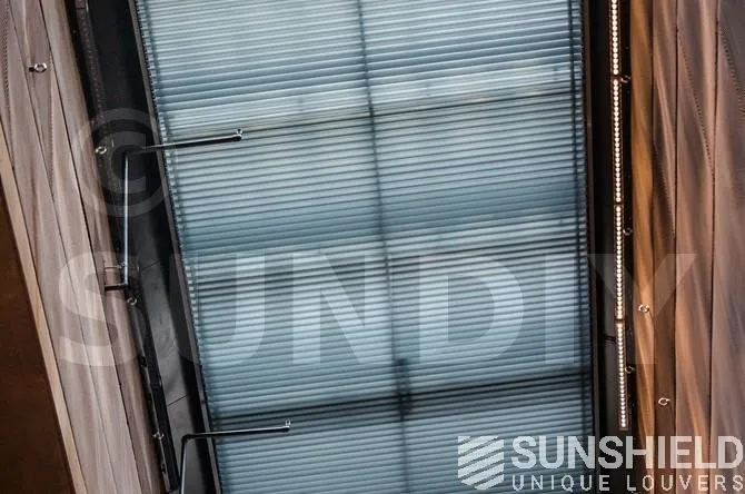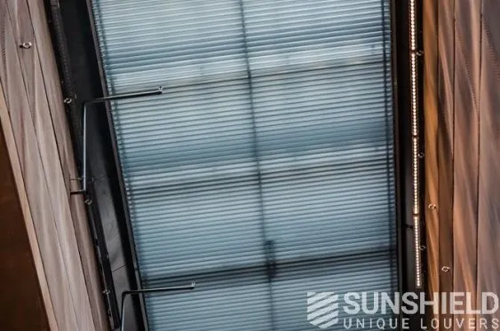 Pour cette construction unique, le partenaire commercial Roltis , en collaboration avec Sunshield, a réalisé trois systèmes de persiennes tout aussi uniques ; un magnifique trapèze et en plus deux puits de lumière spéciaux.