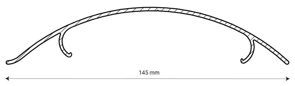 La façade, le côté visible de la persienne 145-E, a une forme convexe et arrondie. L’arrière de la lame est conçu pour une fixation optimale du clip qui maintient la latte. La conception de l’arrière d’une persienne découle de la fonction et de la forme de la façade.