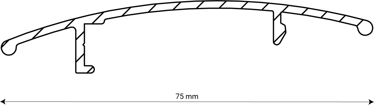La façade, le côté visible, de la persienne 75-E a une forme convexe et arrondie. L’arrière de la lame est conçu pour une fixation optimale du clip qui maintient la latte. La conception de l’arrière d’une persienne découle de la fonction et de la forme de la façade.