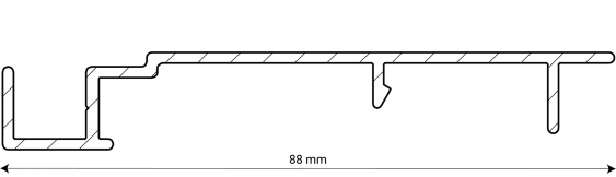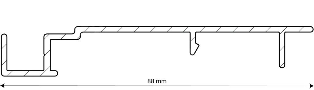 La façade, le côté visible, de la persienne 88-E a une forme presque plate. Outre un grand chevauchement, cette persienne s’emboîte également. Cela rend la persienne 88-E parfaite pour les systèmes d’occultation. Ainsi, lorsque vous recherchez une persienne qui vous permet d’assombrir une pièce à la lumière du jour, le 88-E devrait figurer sur votre liste restreinte. L’arrière de la lame est conçu pour une fixation optimale du clip qui maintient la latte.