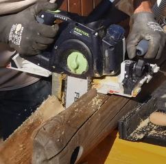 - Scie circulaire : pour couper les lames bois et alu aux bonnes dimensions.