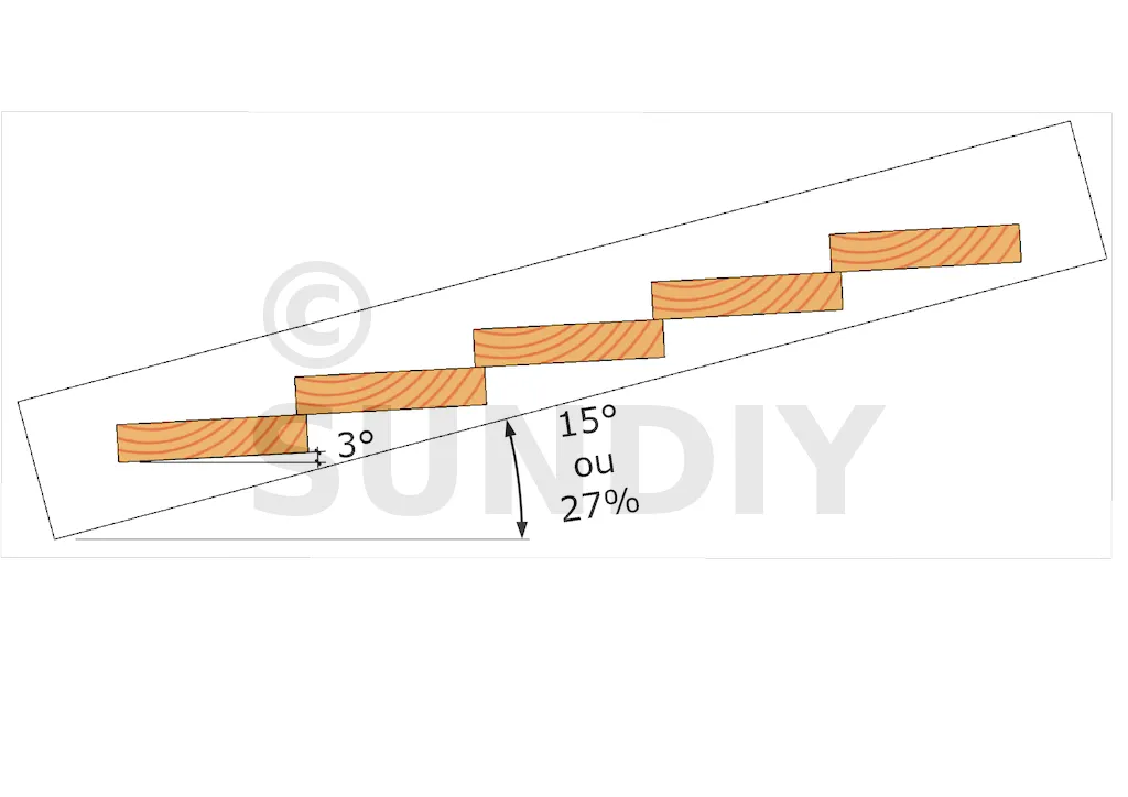 - Dans le sens transversal - perpendiculairement aux lames - la pente n’est pas nécessaire.